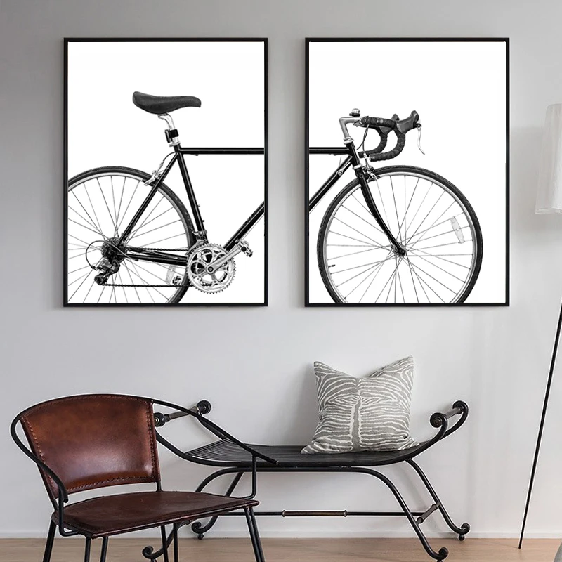 1 セット 2 ピース 現代ミニマリストのキャンバスプリント絵画ポスター黒と白の自転車 非フレーム壁絵のバイク動作するように Painting Poster Wall Picturesprints Painting Aliexpress